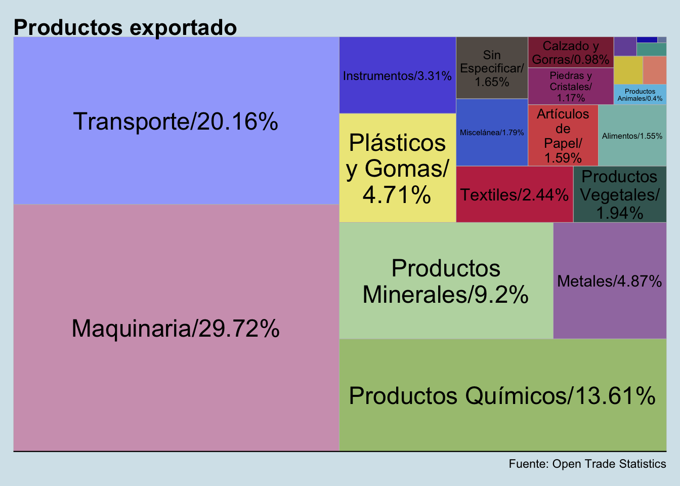 Utilizo el mismo data frame que en el segundo analisis, ya que facilita el trabajo, pero también podría haber hecho como en el analisis de importaciones y uniendo varias data frames de la base orginal de Open Trade Statistics.