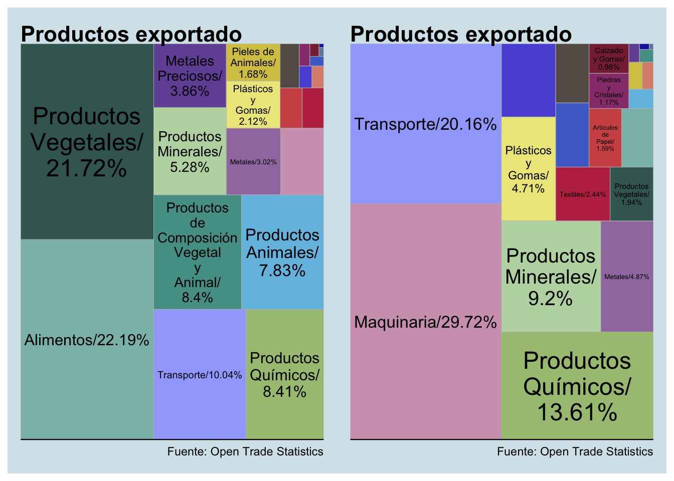 Una analisis mostrando la composición de los productos más exportados y importados en Argentina en 2017.