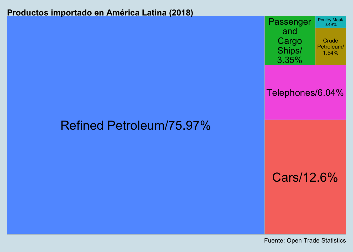 Lo qué tal vez suprende es que telefonos ocupa un 5,88% de los productos importados y barcos de pasajes y cargo un 4,24%.